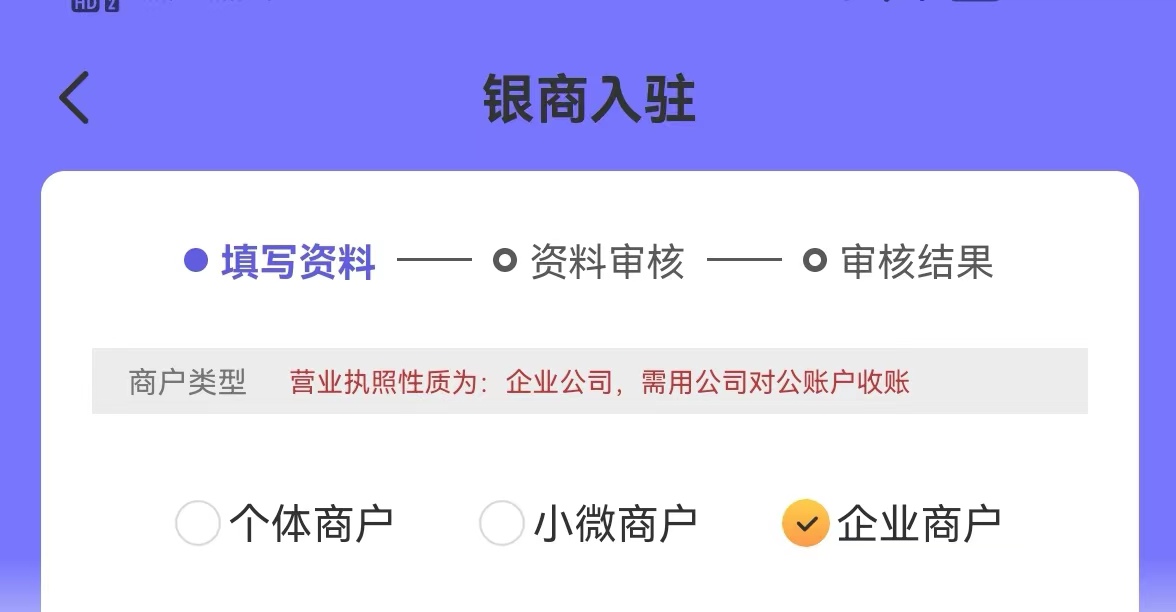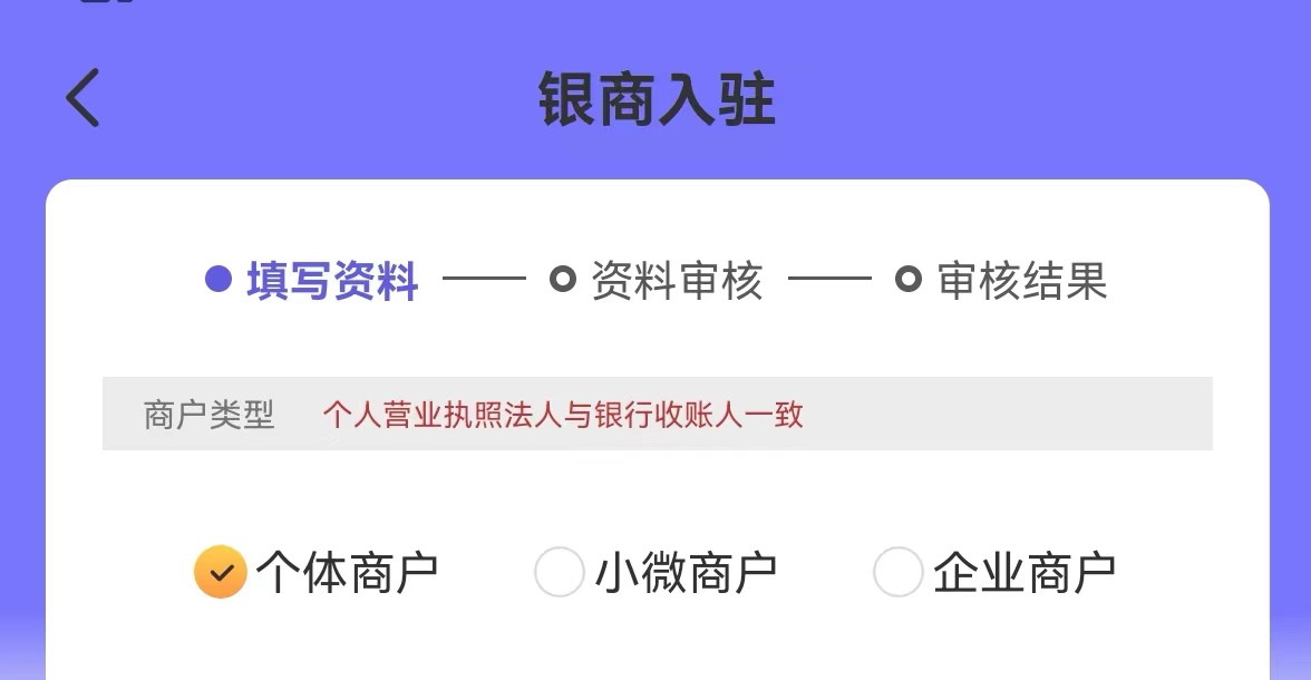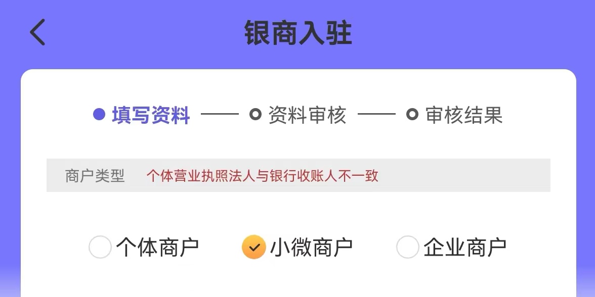 小微商户:(商户收账可不用法人代表银行卡) =>