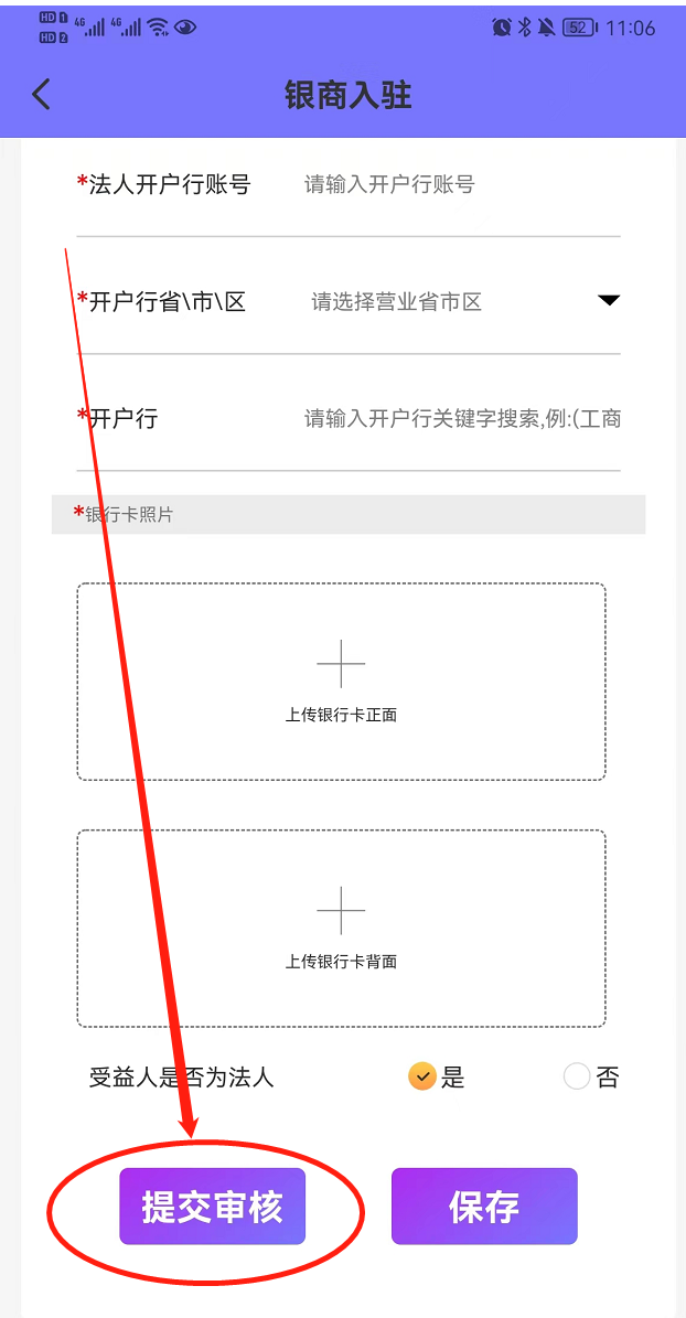 6.填写结束后页面最底部点击“提交审核”即可;如未填写完需退出页面,则点击“保存”