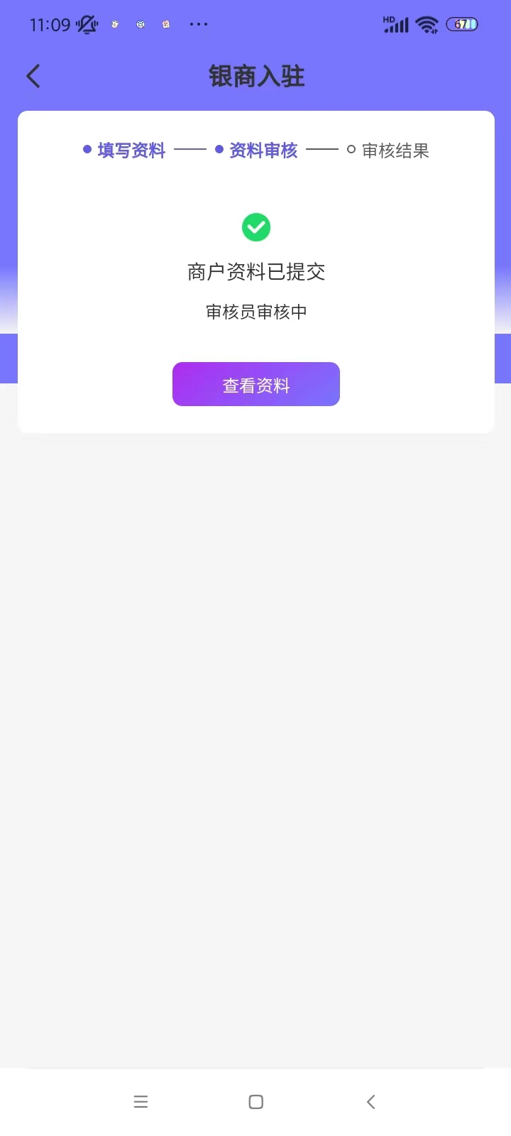 7.提交审核后则显示如下,等待后台审核即可,点击查看资料即可查看商户填写的内容